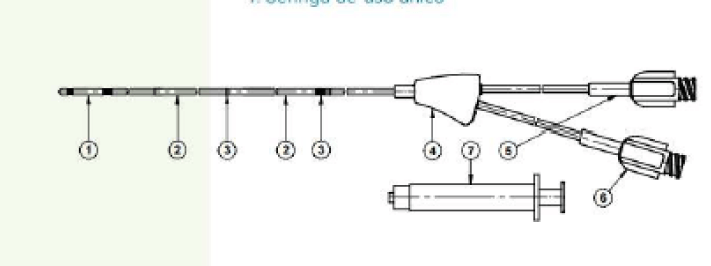 Combina as propriedades de dois tipos de cateteres superiores, permitindo a oclusão e remoção de bloqueio dos vasos e a infusão ou aspiração, se necessário, conforme indicado abaixo: